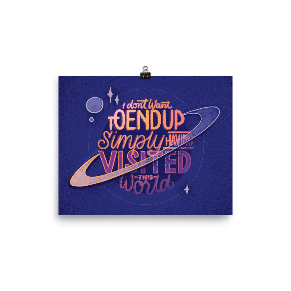 "I don't want to end up simply having visited this world."